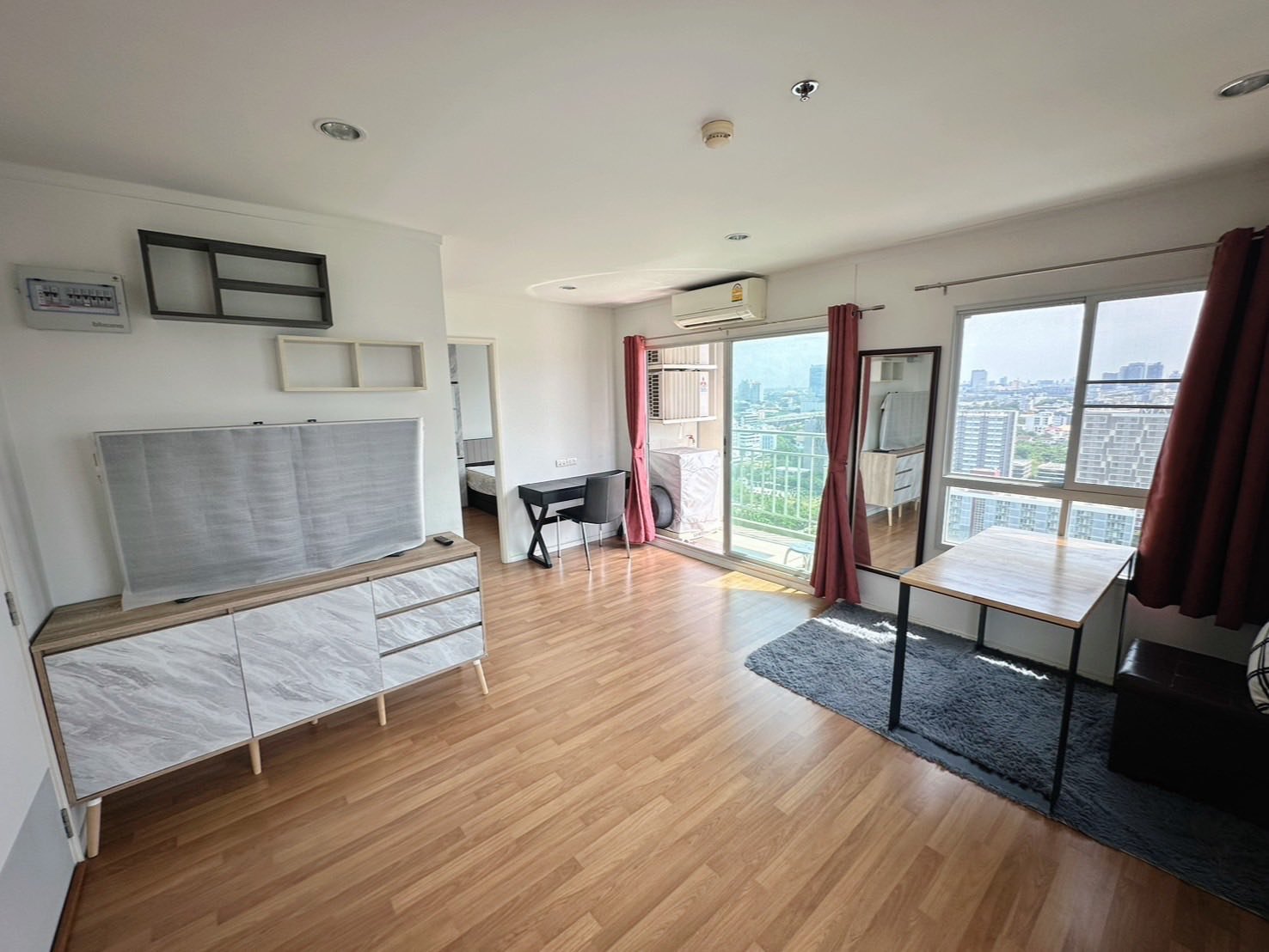 คอนโด ชั้น 22 ห้องมุม พร้อมเฟอร์นิเจอร์ ตกแต่งสวยงาม ให้เช่า ย่านรัชดา-พระราม9 ใกล้โชว์ ดีซี เพียง 400 เมตร