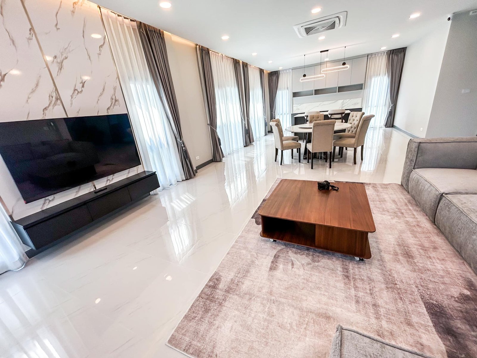 ให้เช่า บ้านหรู พร้อมเฟอร์นิเจอร์ ตกแต่งสวยงาม ย่านบางนา-บางแก้ว 2 ชั้น, 5 ห้องนอน, 6 ห้องน้ำ, 1 ห้องแม่บ้านพร้อมห้องน้ำ พื้นที่ใช้สอย 416 ตร.ม. ที่จอดรถ 4 คัน,บ้านพร้อมเฟอร์นิเจอร์ตามภาพ เครื่องปรับอากาศ 9 เครื่อง . สถานที่ใกล้เคียง เมกาบางนา 2 กม. ไทวัสดุ สาขาบางนา 3.2 กม. โลตัส บางนา-ตราด 3.3 กม. ดีแคทลอน บางนา 3.3 กม. โรงพยาบาลพริ้นซ์ สุวรรณภูมิ 3.9 กม. มหาวิทยาลัยรามคำแหง วิทยาเขตบางนา 5.3 กม. . 280,000 บาท/เดือน (สัญญาขั้นต่ำ 1 ปี) ค่าแรกเข้ามัดจำ 2 เดือน ล่วงหน้า 1 เดือน .