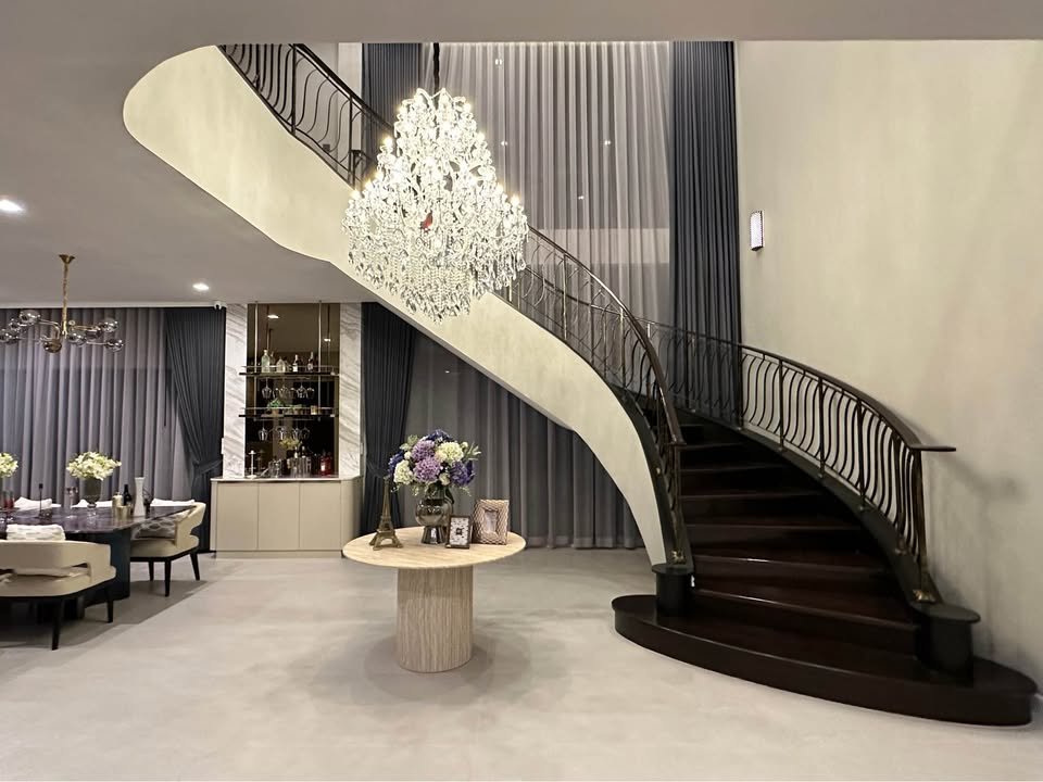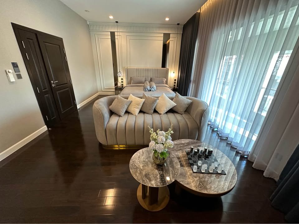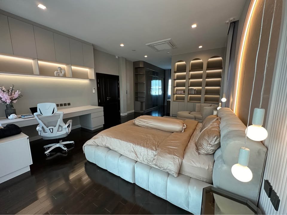 ให้เช่า บ้านหรู พร้อมเฟอร์นิเจอร์ ตกแต่งสวยงาม ย่านศรีนครินทร์-ร่มเกล้า 2 ชั้น, 5 ห้องนอน, 6 ห้องน้ำ, 2 ห้องนั่งเล่น, 2 ห้องแม่บ้าน ขนาด 127 ตร.ว.,พื้นที่ใช้สอย 604 ตร.ม. ที่จอดรถ 5 คัน,บ้านหรูพร้อมเฟอร์นิเจอร์ตามภาพ บ้านพร้อมระบบ Digital Door lockแบบสแกนใบหน้า ประตูรั้วอัตโนมัติ ระบบกันขโมยและกล้องวงจรปิด ระบบตรวจจับควันและความร้อน ระบบโซล่าเซลล์ ทั้งโครงการมีบ้านเพียง 62 หลัง เงียบสงบมีความเป็นส่วนตัว . สถานที่ใกล้เคียง แม็คโคร ฟู้ดเซอร์วิส ลาดกระบัง 7.5 กม. เดอะพาซิโอมอลล์ ลาดกระบัง 7.5 กม. โรบินสัน ไลฟ์สไตล์ ลาดกระบัง 7.5 กม. โรงพยาบาลสิรินธร 8.3 กม. สถาบันเทคโนโลยีพระจอมเกล้าเจ้าคุณทหารลาดกระบัง 9.7 กม. ท่าอากาศยานสุวรรณภูมิ 17.4 กม. . 450,000 บาท/เดือน (สัญญาขั้นต่ำ 1 ปี) ค่าแรกเข้ามัดจำ 2 เดือน ล่วงหน้า 1 เดือน .