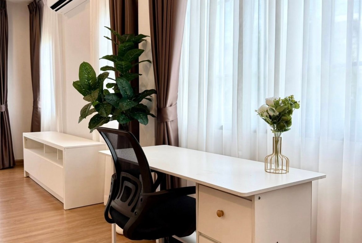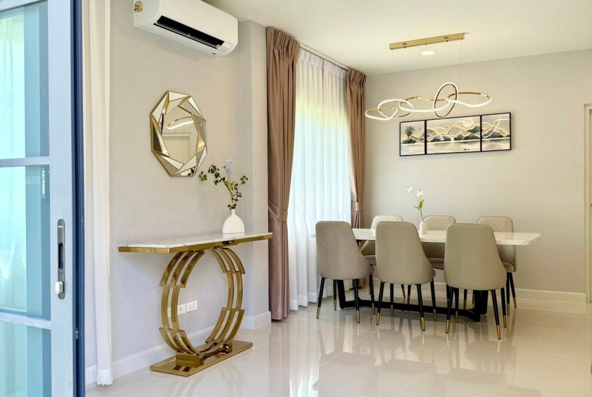 ให้เช่า บ้านหรู ห้องมุม พร้อมเฟอร์นิเจอร์ ตกแต่งสวยงาม ย่านบางนา-บางแก้ว 2 ชั้น, 4 ห้องนอน, 5 ห้องน้ำ,ขนาด 80 ตร.ว.,พื้นที่ใช้สอย 303 ตร.ม. ที่จอดรถ 2 คัน,บ้านพร้อมเฟอร์นิเจอร์ตามภาพ **ล้างเครื่องปรับอากาศทุก 6 เดือน** . สถานที่ใกล้เคียง เมกาบางนา 1.9 กม. ไทวัสดุ สาขาบางนา 2.9 กม. โลตัส บางนา-ตราด 3 กม. บุญถาวร สาขาสุวรรณภูมิ 3.6 กม. โรงพยาบาลพริ้นซ์ สุวรรณภูมิ 3.7 กม. เซ็นทรัล บางนา 8.2 กม. . 150,000 บาท/เดือน (สัญญาขั้นต่ำ 1 ปี) ค่าแรกเข้ามัดจำ 2 เดือน ล่วงหน้า 1 เดือน .