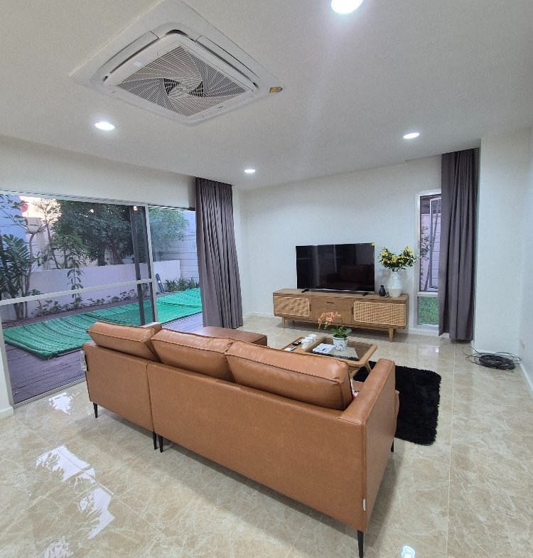 ให้เช่า บ้านเดี่ยว รีโนเวทใหม่ พร้อมเฟอร์นิเจอร์ ย่านพระราม5-นนทบุรี 2 ชั้น, 3 ห้องนอน, 3 ห้องน้ำ,ขนาด 71 ตร.ว.,พื้นที่ใช้สอย 175 ตร.ม. ที่จอดรถ 2 คัน,บ้านเดี่ยวพร้อมเฟอร์นิเจอร์ตามภาพ . สถานที่ใกล้เคียง ตลาดพระราม 5 1 กม. โลตัส บางใหญ่ 2.3 กม. โฮมโปร ราชพฤกษ์ 2.7 กม. เดอะวอล์ค ราชพฤกษ์ 2.8 กม. โรงพยาบาลธนบุรี 2 7.1 กม. . 33,000 บาท/เดือน (สัญญาขั้นต่ำ 1 ปี) ค่าแรกเข้ามัดจำ 2 เดือน ล่วงหน้า 1 เดือน .